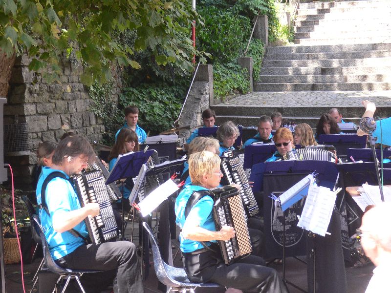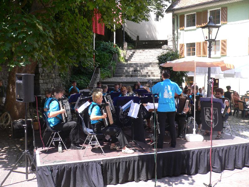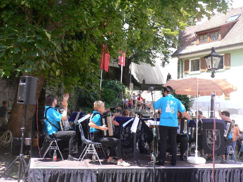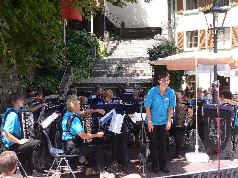 Bei wunderschönem Sommerwetter spielte das Akkordeon-Orchester Tiengen am Schwyzertags-Sonntag im Städtle.